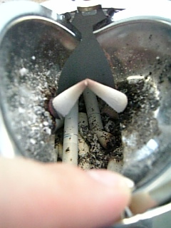 だって灰になってしまえば捨てるの一緒だし、タバコ臭の元凶の上でお香焚いてるんで臭いも消えるじゃないですか。